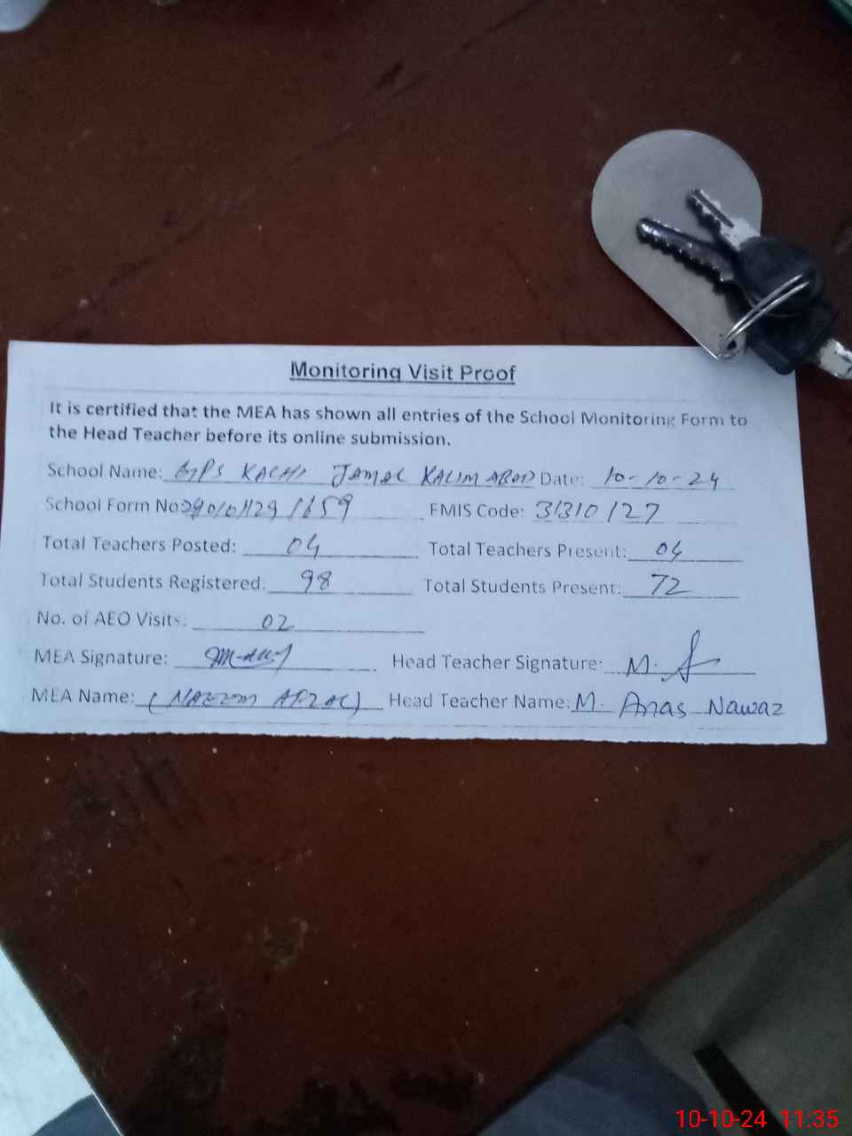 | EMIS Code: 31310127 | Name of School: GPS KACHI JAMAL KALIM ABAD (After Noon) | |||