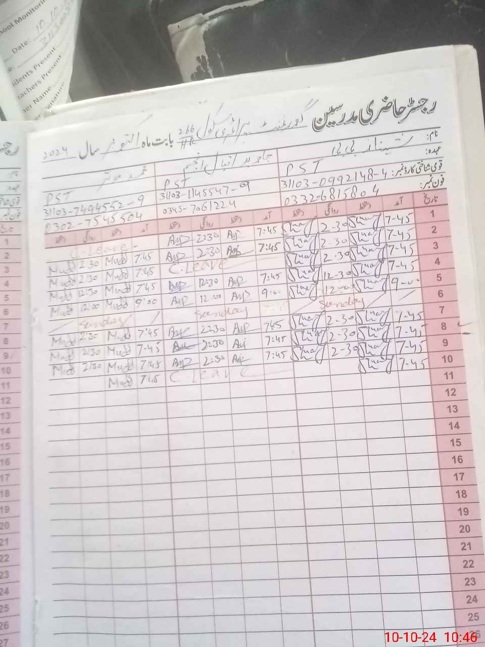 | Name: Sh**** Bi**** Designation: (School Headmaster's/Headmistress's) PST Phone/Cell Number: 03**** |