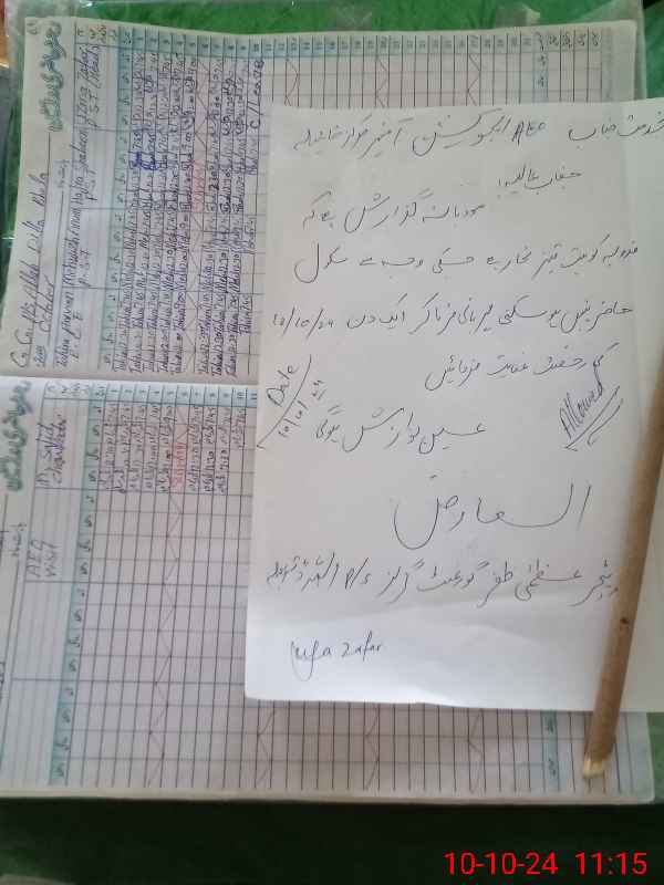 | Name: HA**** SH**** Designation: (School Headmaster's/Headmistress's) PST/PTC/JV Phone/Cell Number: 03**** |