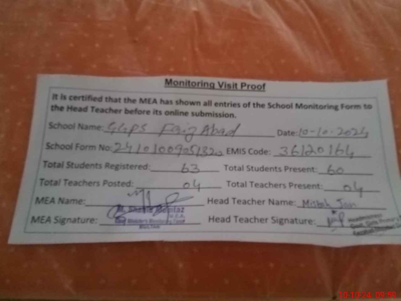 | EMIS Code: 36120164 | Name of School: GGPS FAIZ ABAD SHUJABAD | |||