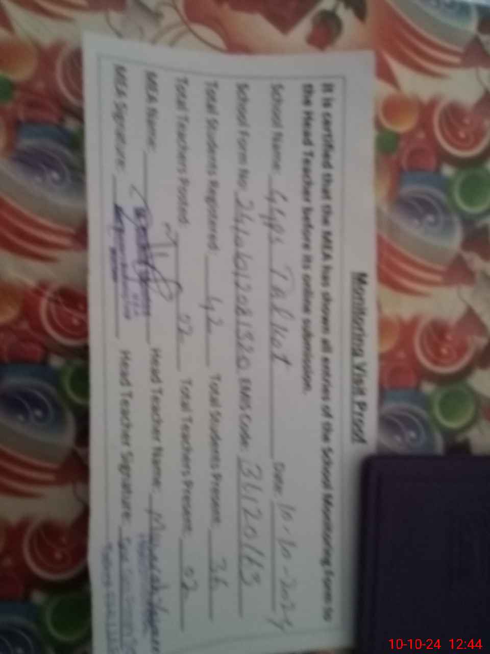 | Monitoring Date: 10-10-2024 | Start Time: 10-10-2024 12:08 PM | End Time: 10-10-2024 12:44 PM | Name of MEA: MU**** SH**** MU**** | |