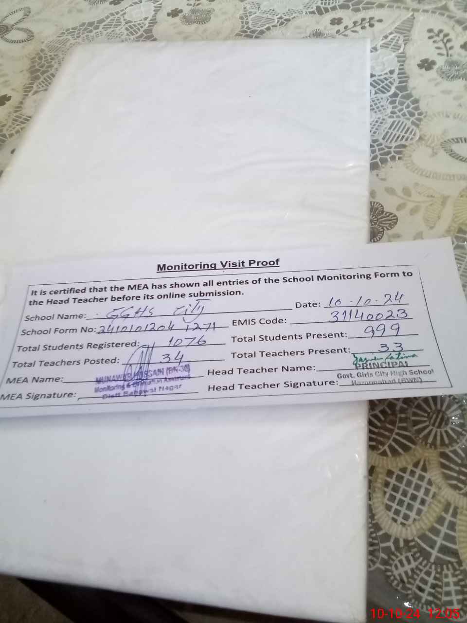 | Certified that this School was Inspected by the Undersigned MEA/DMO Today and the Information Stated Above is as Per Record. | |||||