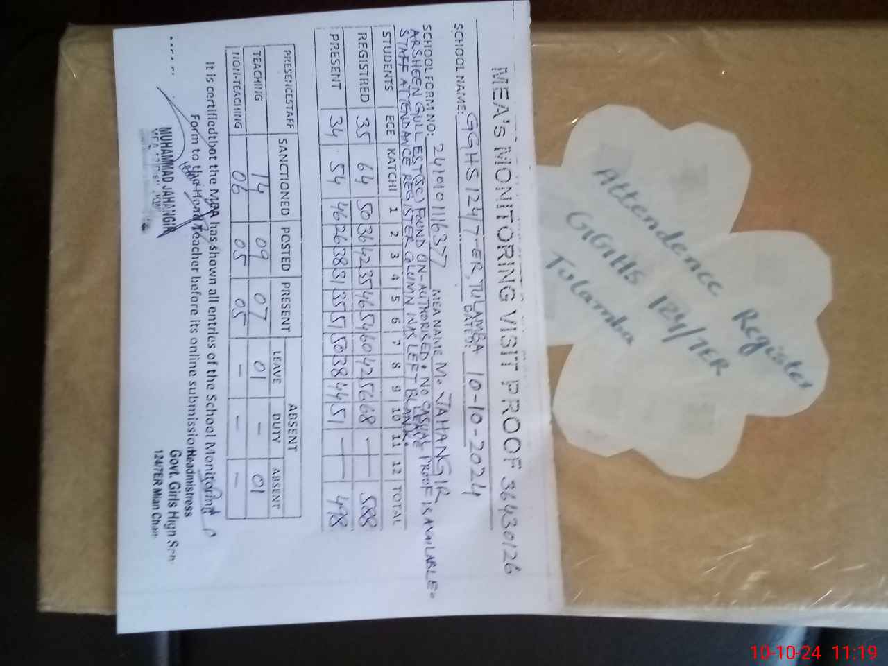 | EMIS Code: 36430126 | Name of School: GGHS 124/7-ER TULAMBA | |||