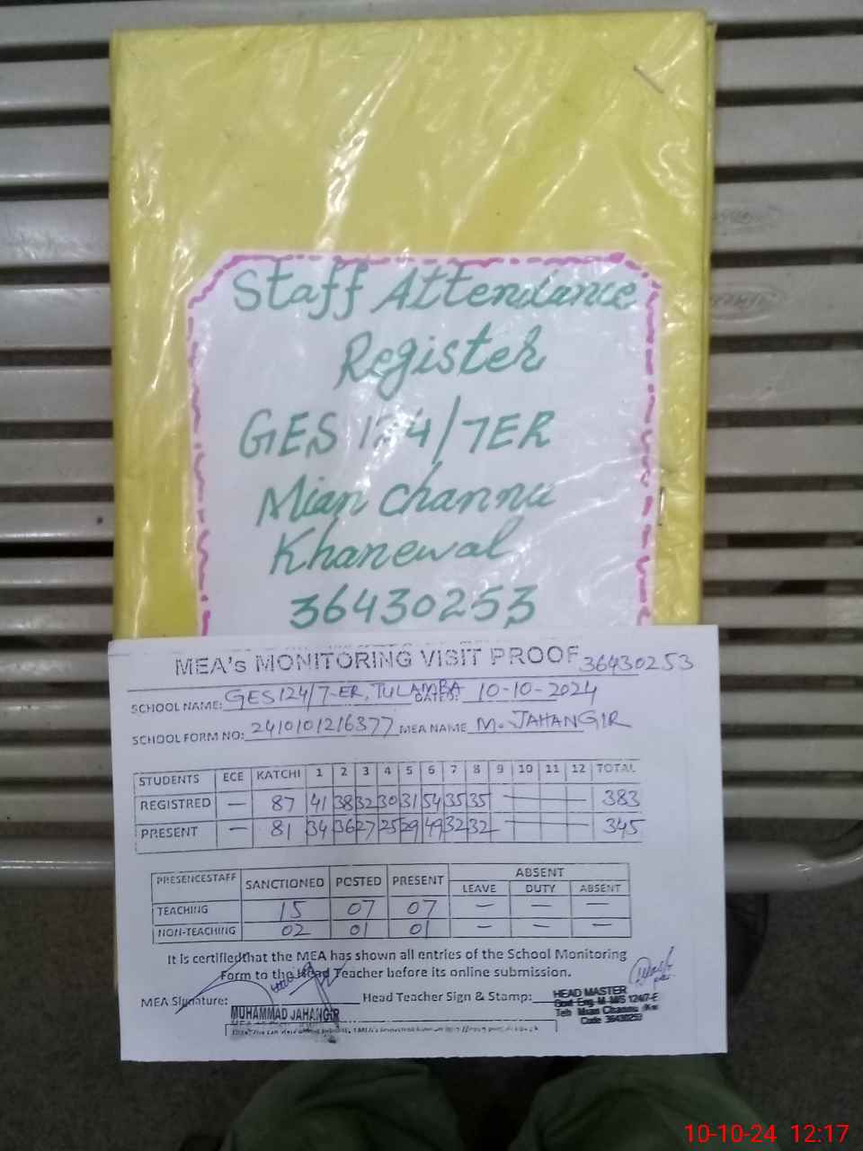 | Attendance Register | Head Teacher | MEA with School | Visit Proof |