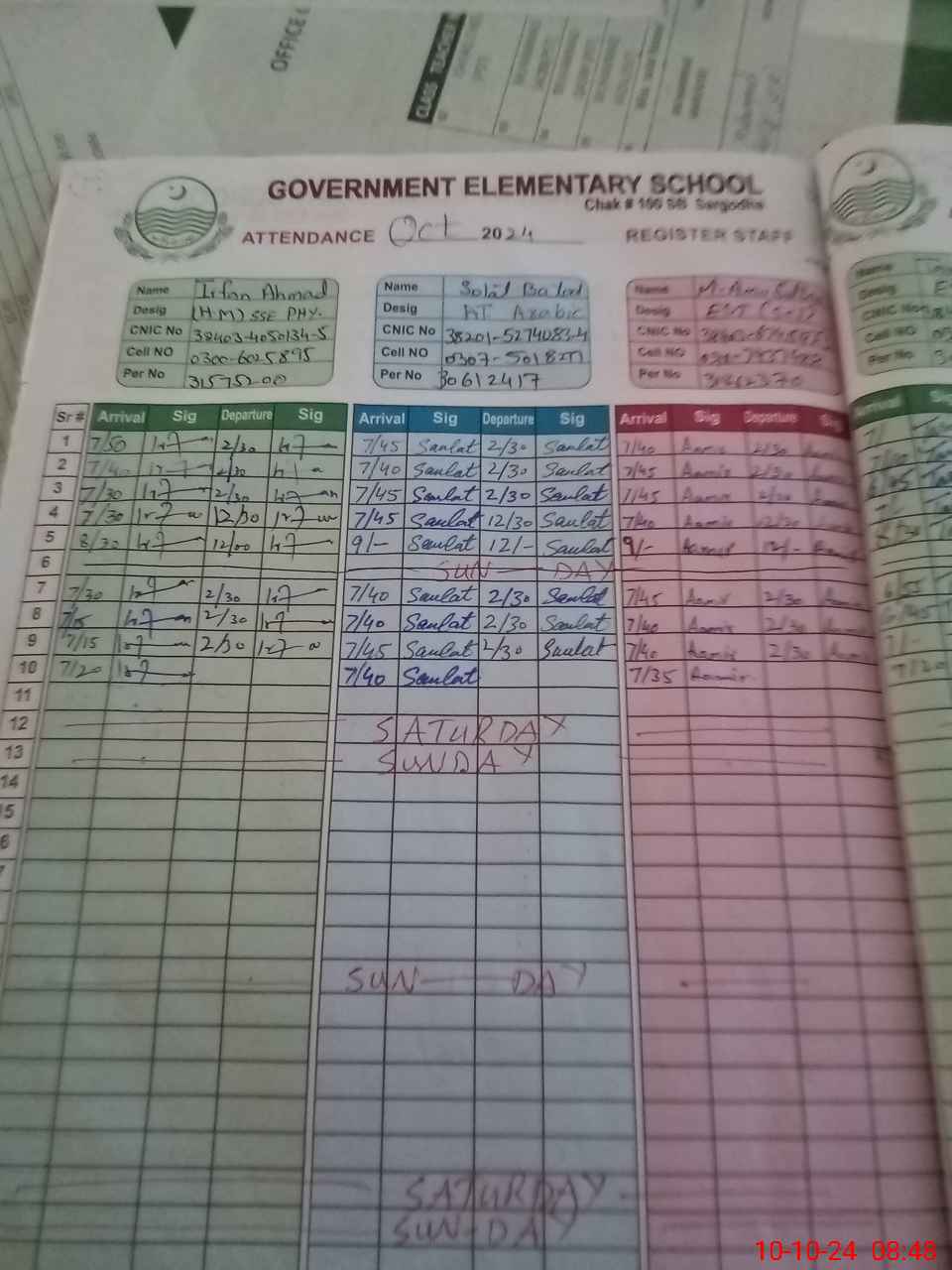 | Name: IR**** AH**** Designation: (School Headmaster's/Headmistress's) SSE Phone/Cell Number: 03**** |