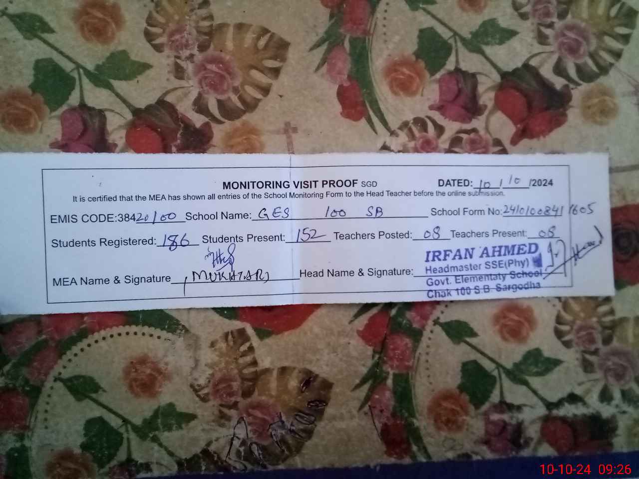 | Certified that this School was Inspected by the Undersigned MEA/DMO Today and the Information Stated Above is as Per Record. | |||||