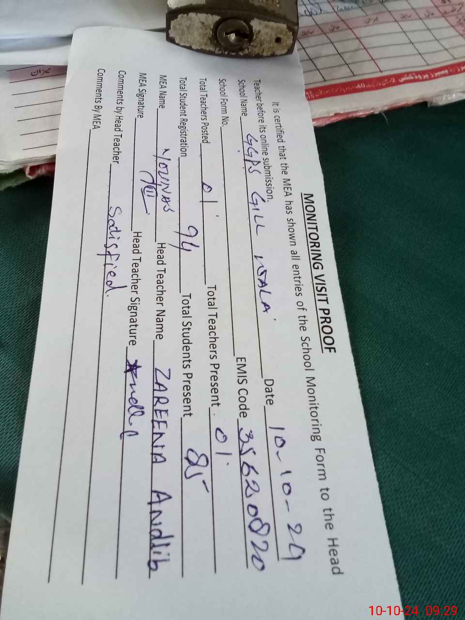 | EMIS Code: 35620820 | Name of School: GGPS GILL WALA | |||