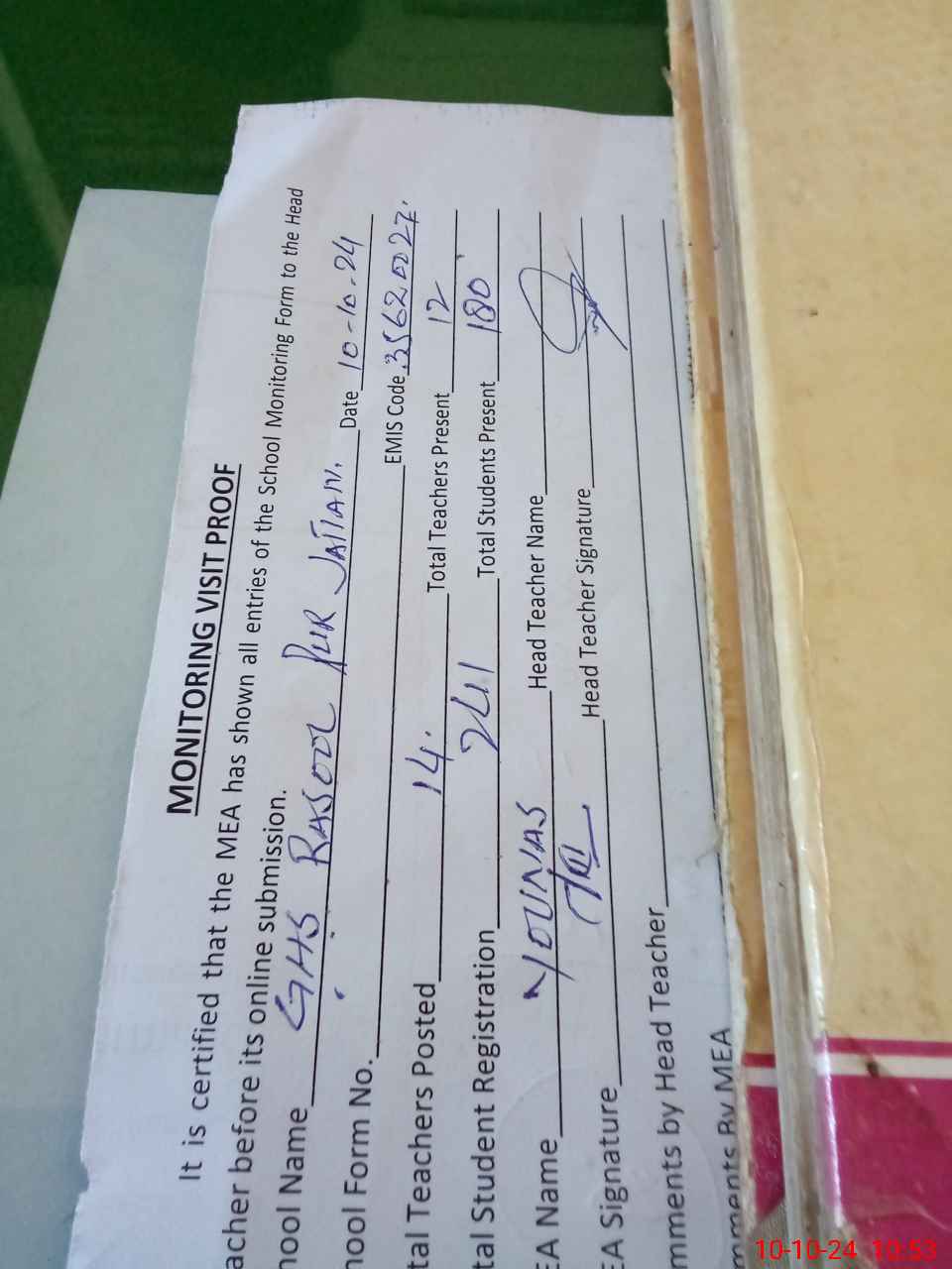 | EMIS Code: 35620027 | Name of School: GHS RASUL PUR JATTAN | |||