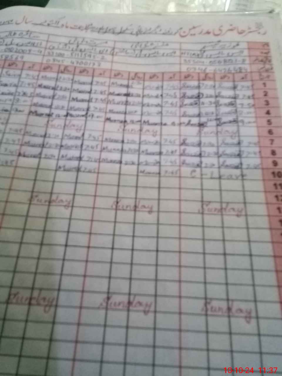 | CNIC | Full Name | Designation | R/C | Absence During Last Calender Month |
