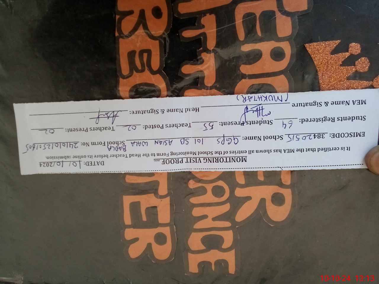 | Monitoring Date: 10-10-2024 | Start Time: 10-10-2024 12:50 PM | End Time: 10-10-2024 01:22 PM | Name of MEA: MU**** AH**** | |