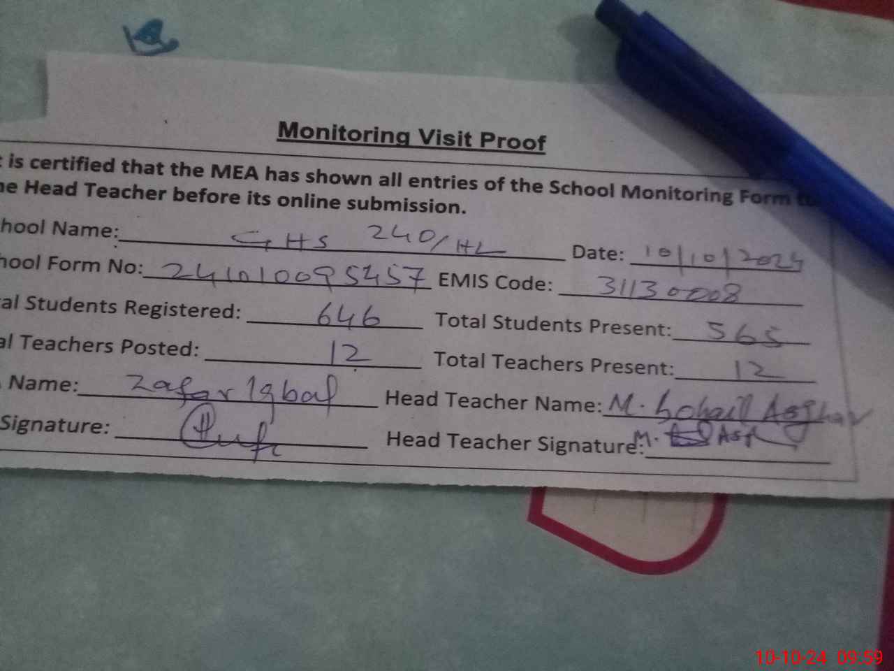 | EMIS Code: 31130008 | Name of School: GHS CHAK 240/HL | |||
