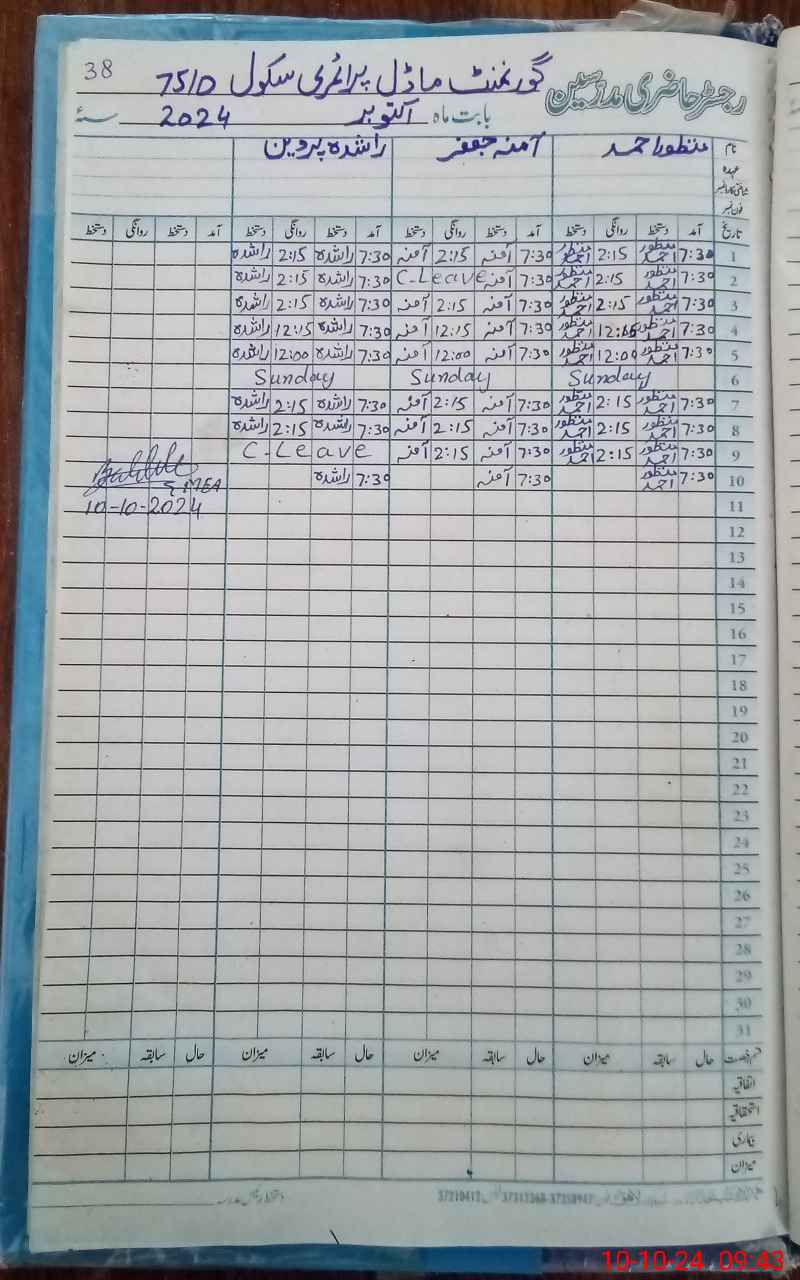 | Name: MA**** AH**** Designation: (School Headmaster's/Headmistress's) PST Phone/Cell Number: 03**** |