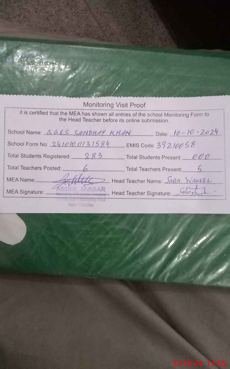 | EMIS Code: 39210058 | Name of School: GGES SANDHAY KHAN | |||