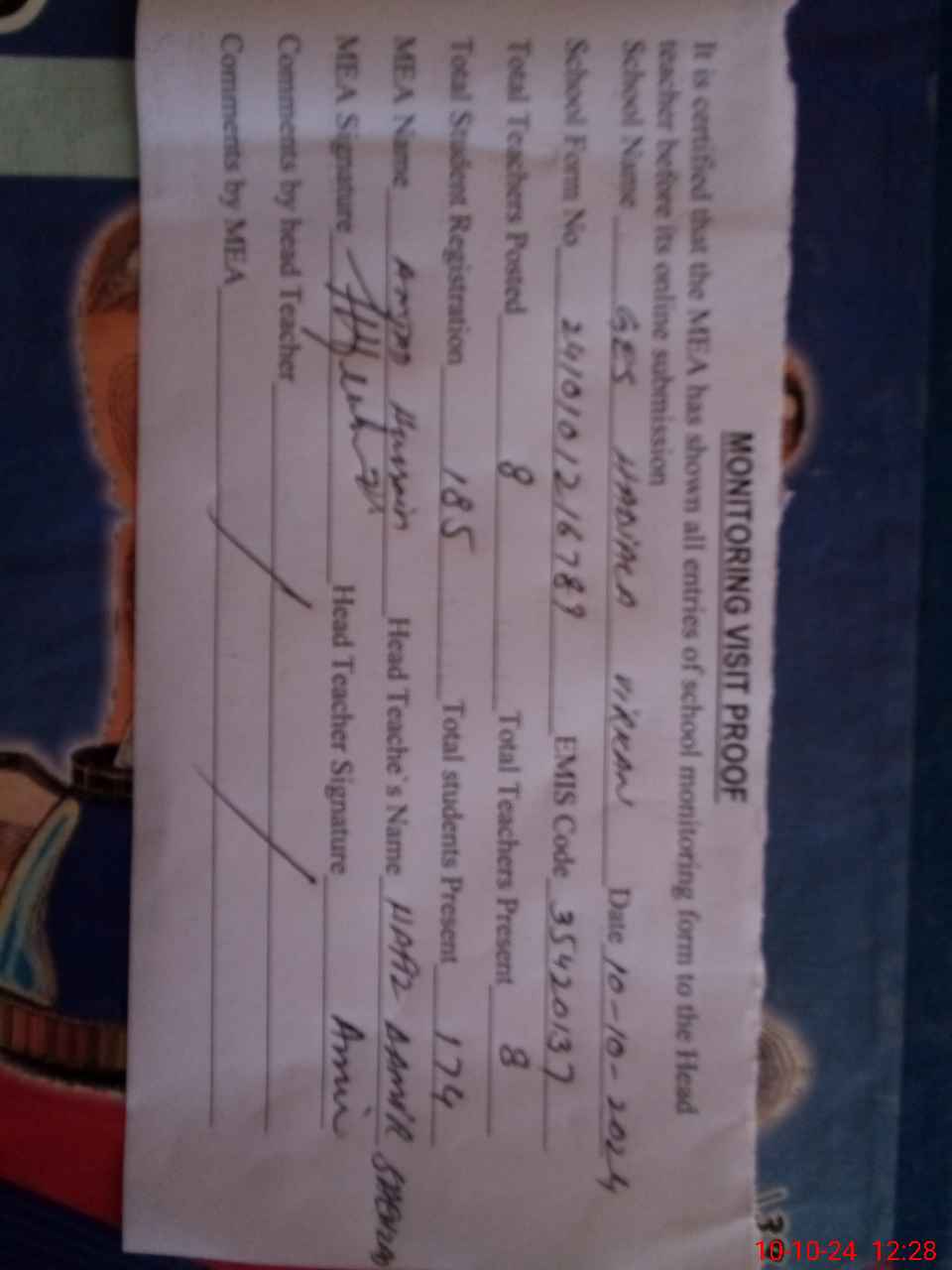 | Certified that this School was Inspected by the Undersigned MEA/DMO Today and the Information Stated Above is as Per Record. | |||||