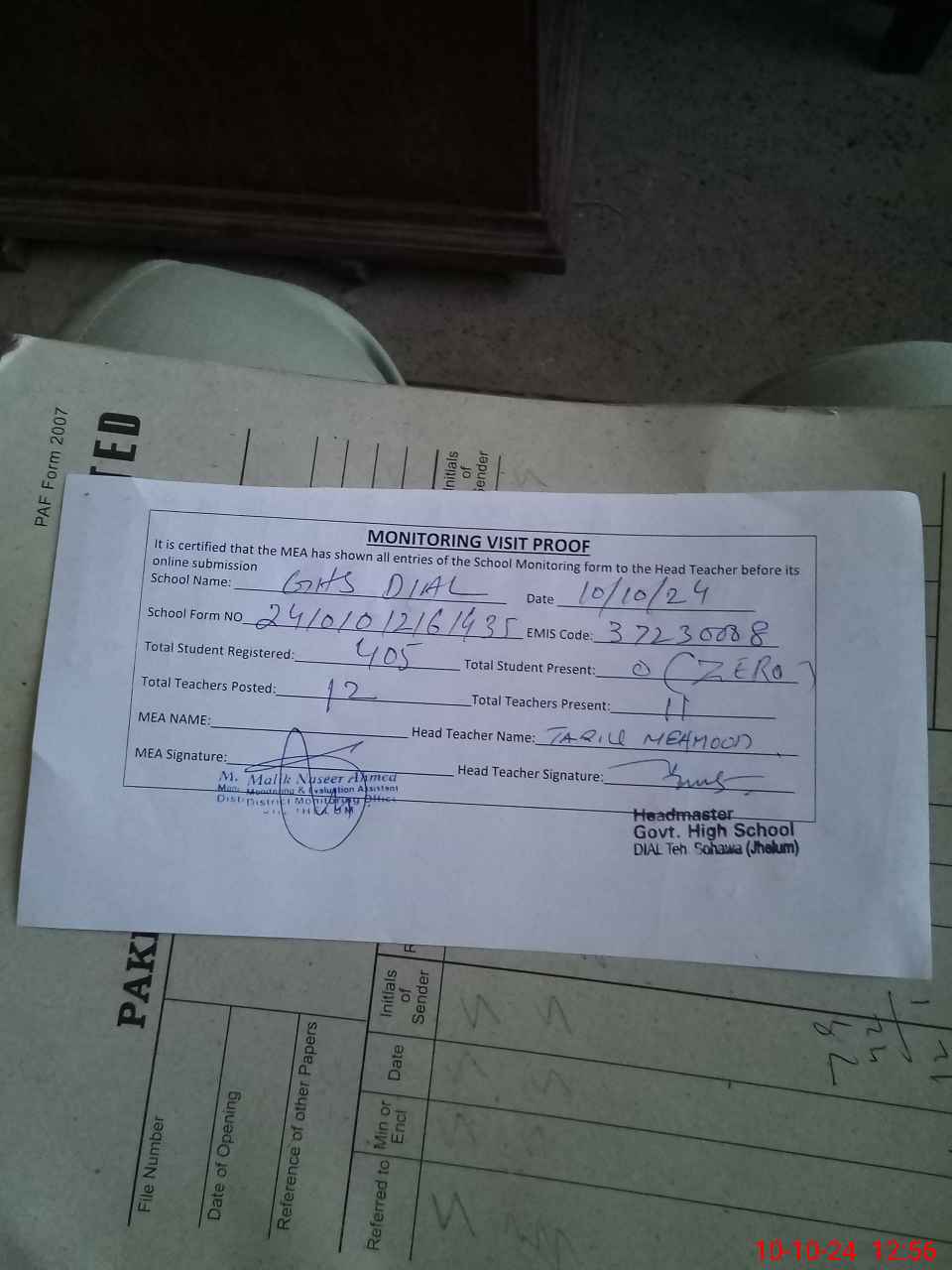 | Certified that this School was Inspected by the Undersigned MEA/DMO Today and the Information Stated Above is as Per Record. | |||||