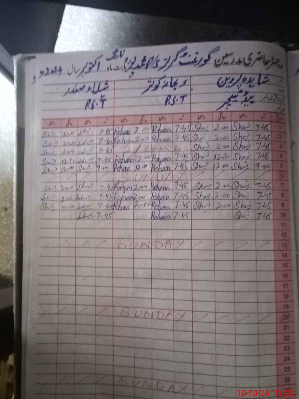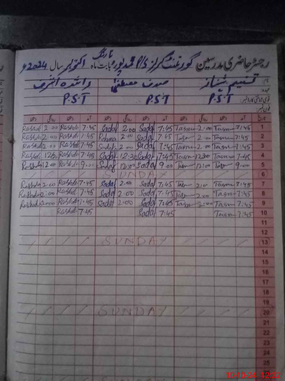 | CNIC | Full Name | Designation | R/C | Absence During Last Calender Month |