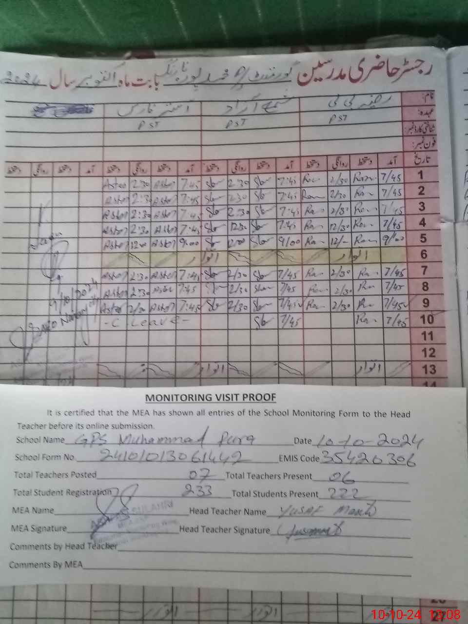 | EMIS Code: 35420306 | Name of School: GPS MUHAMMAD PURA | |||
