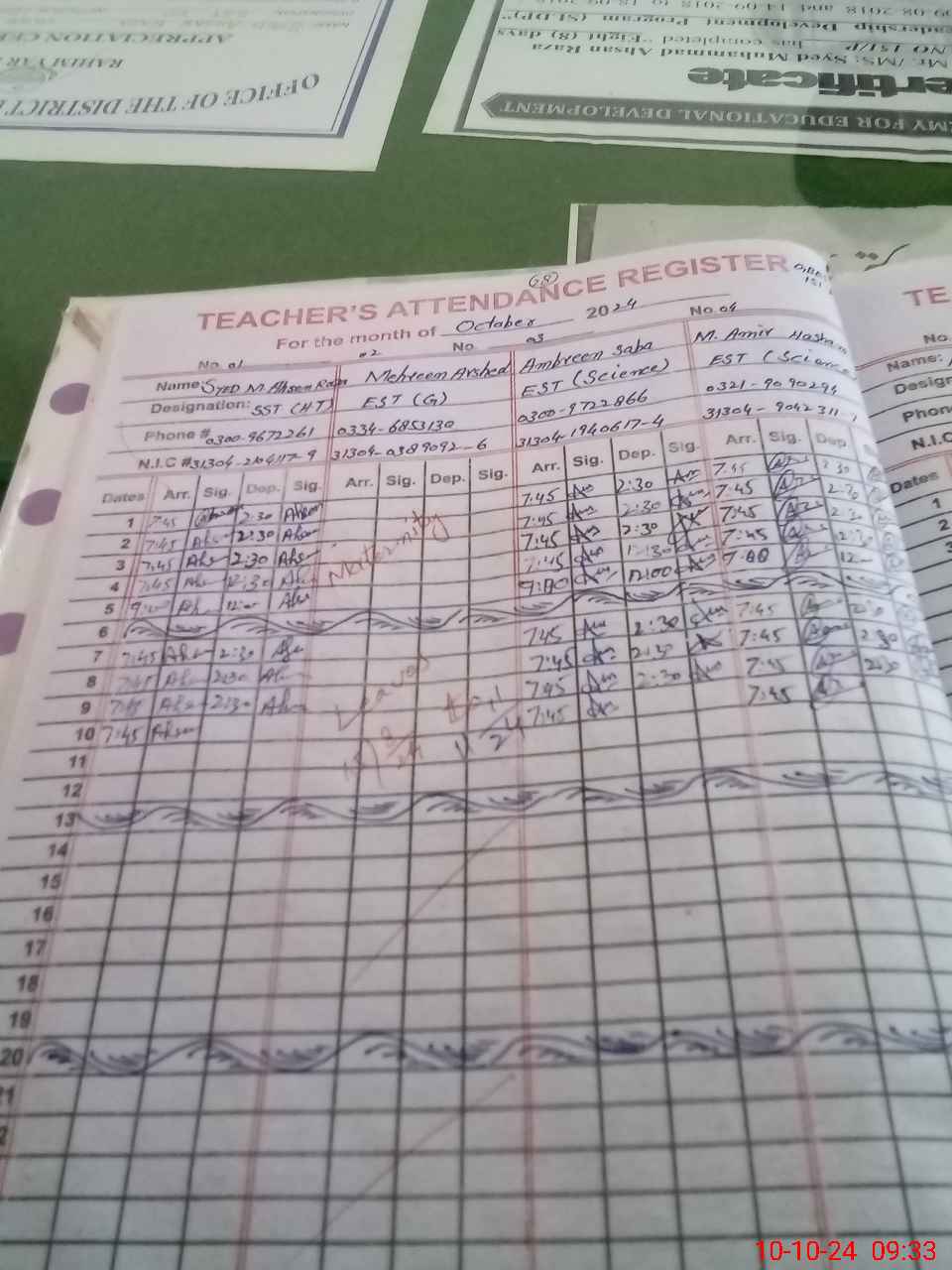 | Name: Sy**** MAh**** Ra**** Gi**** Designation: (School Headmaster's/Headmistress's) SST Phone/Cell Number: 03**** |