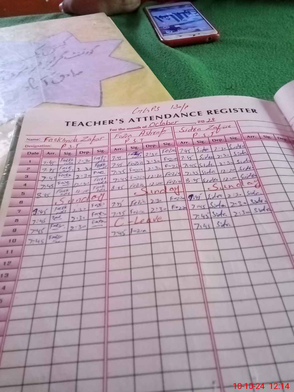 | Name: Fa**** Za**** Designation: (School Headmaster's/Headmistress's) PST Phone/Cell Number: 03**** |