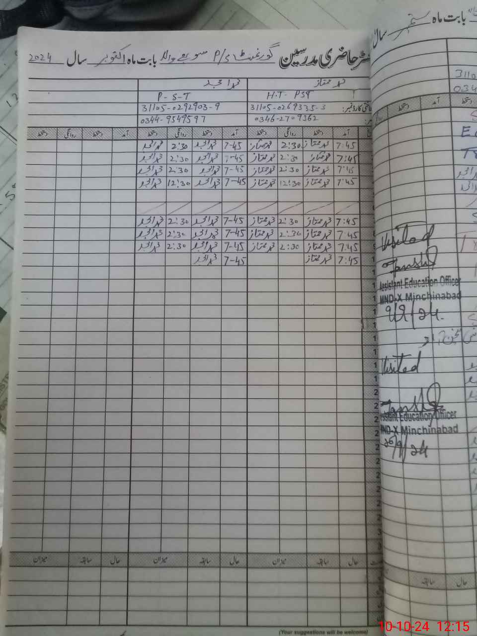 | Name: MU**** MU**** Designation: (School Headmaster's/Headmistress's) PST Phone/Cell Number: 03**** |