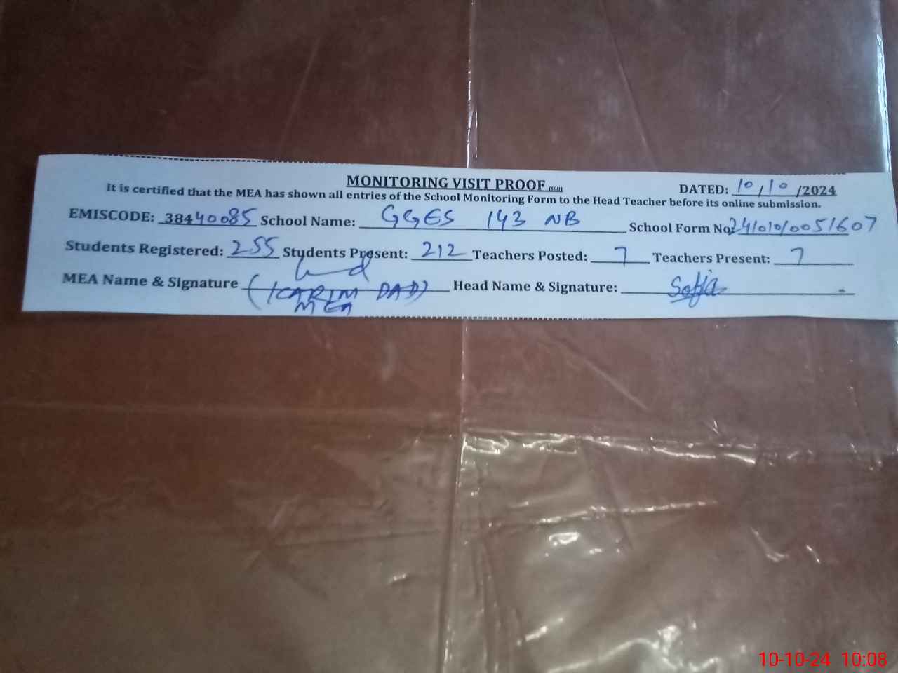 | Certified that this School was Inspected by the Undersigned MEA/DMO Today and the Information Stated Above is as Per Record. | |||||