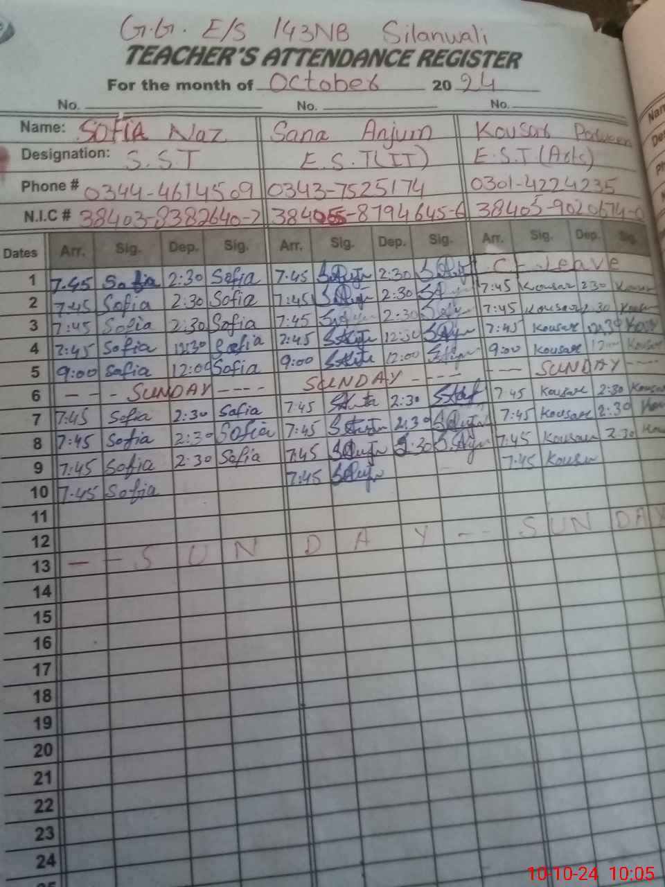 | Name: Sa**** Na**** Designation: (School Headmaster's/Headmistress's) SST Sci Phone/Cell Number: 03**** |
