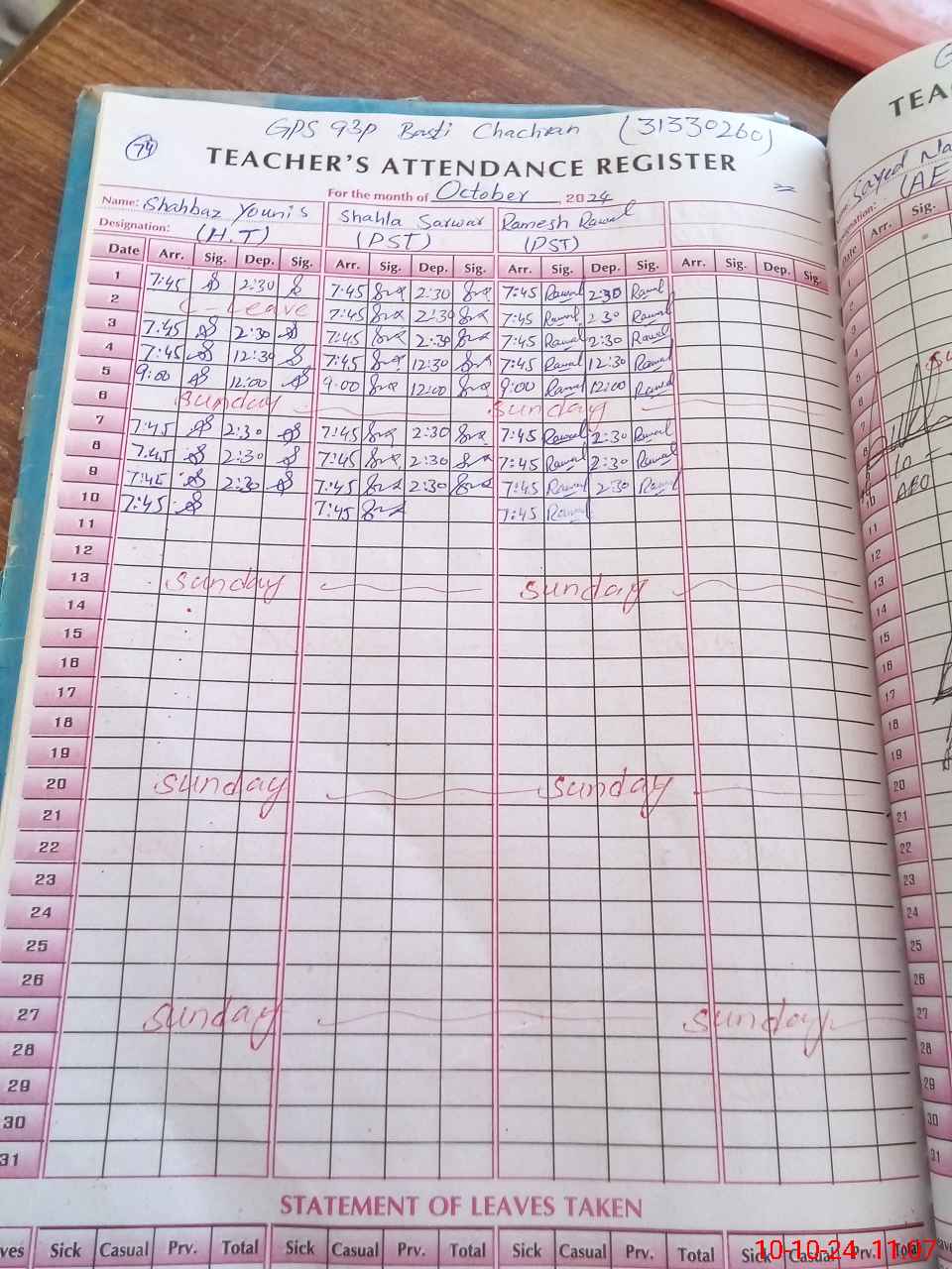 | Leave | Duty | Absent | Maternity | Medical | Ex- Pak |