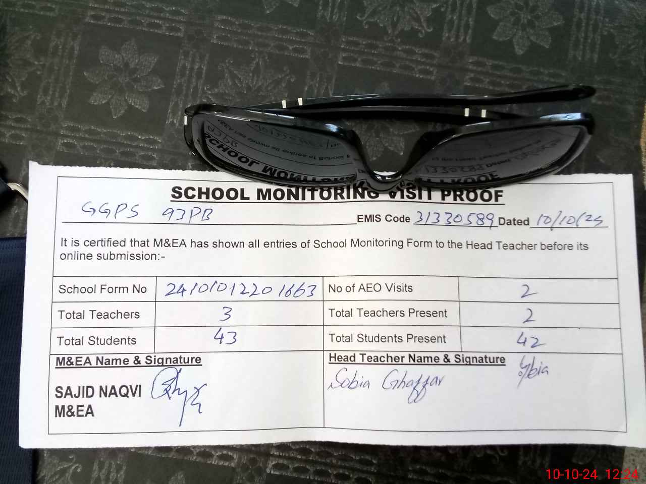 | Monitoring Date: 10-10-2024 | Start Time: 10-10-2024 12:05 PM | End Time: 10-10-2024 12:28 PM | Name of MEA: Sa**** ulHa**** | |