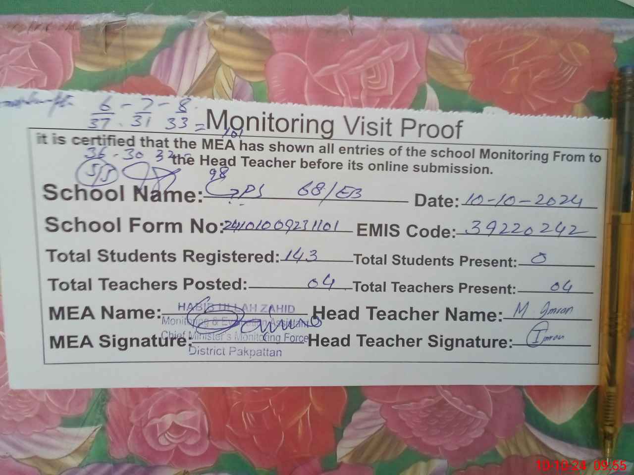 | EMIS Code: 39220242 | Name of School: GPS 68 EB | |||