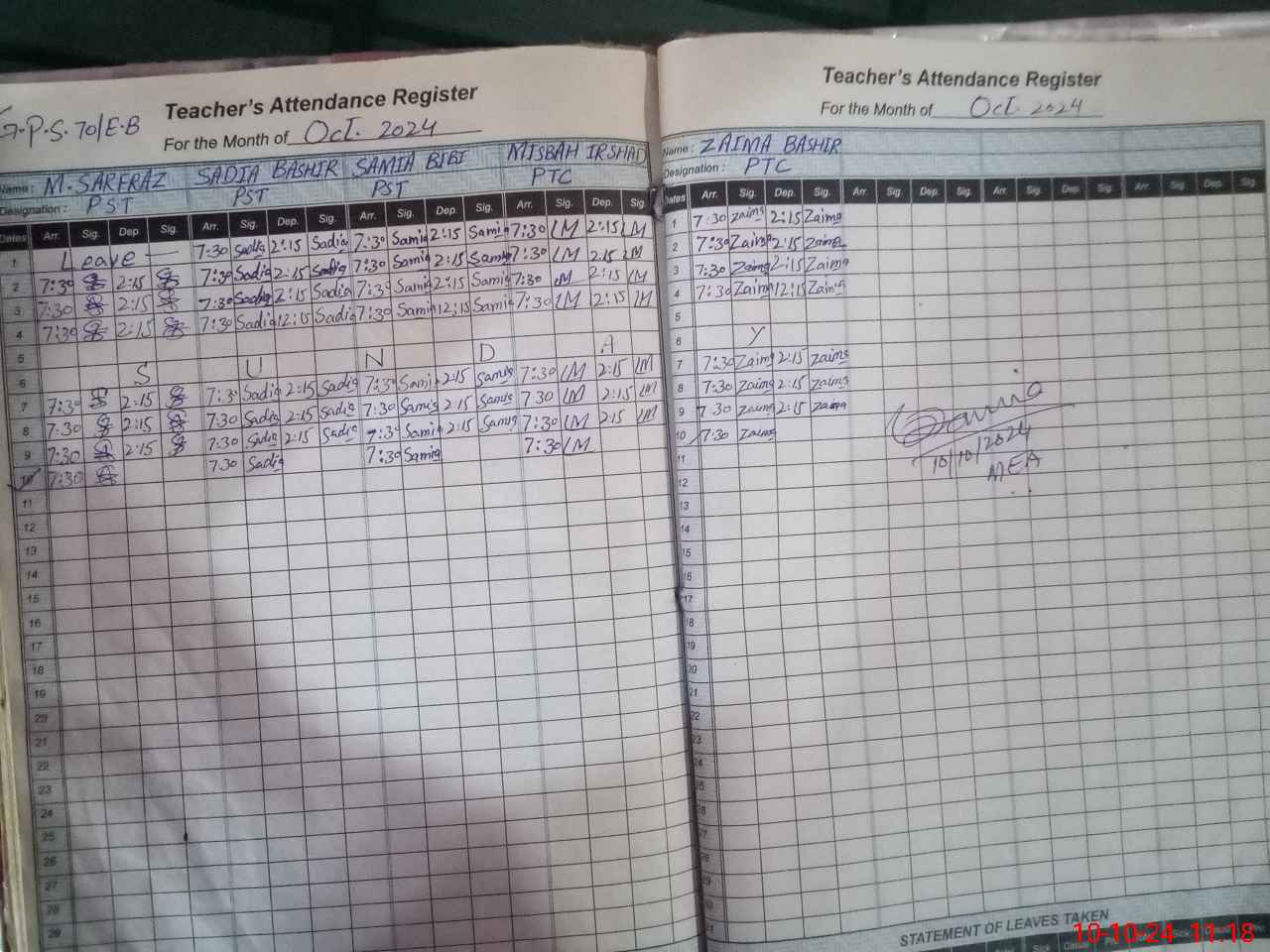 | Name: MU**** SA**** Designation: (School Headmaster's/Headmistress's) PST Phone/Cell Number: 03**** |
