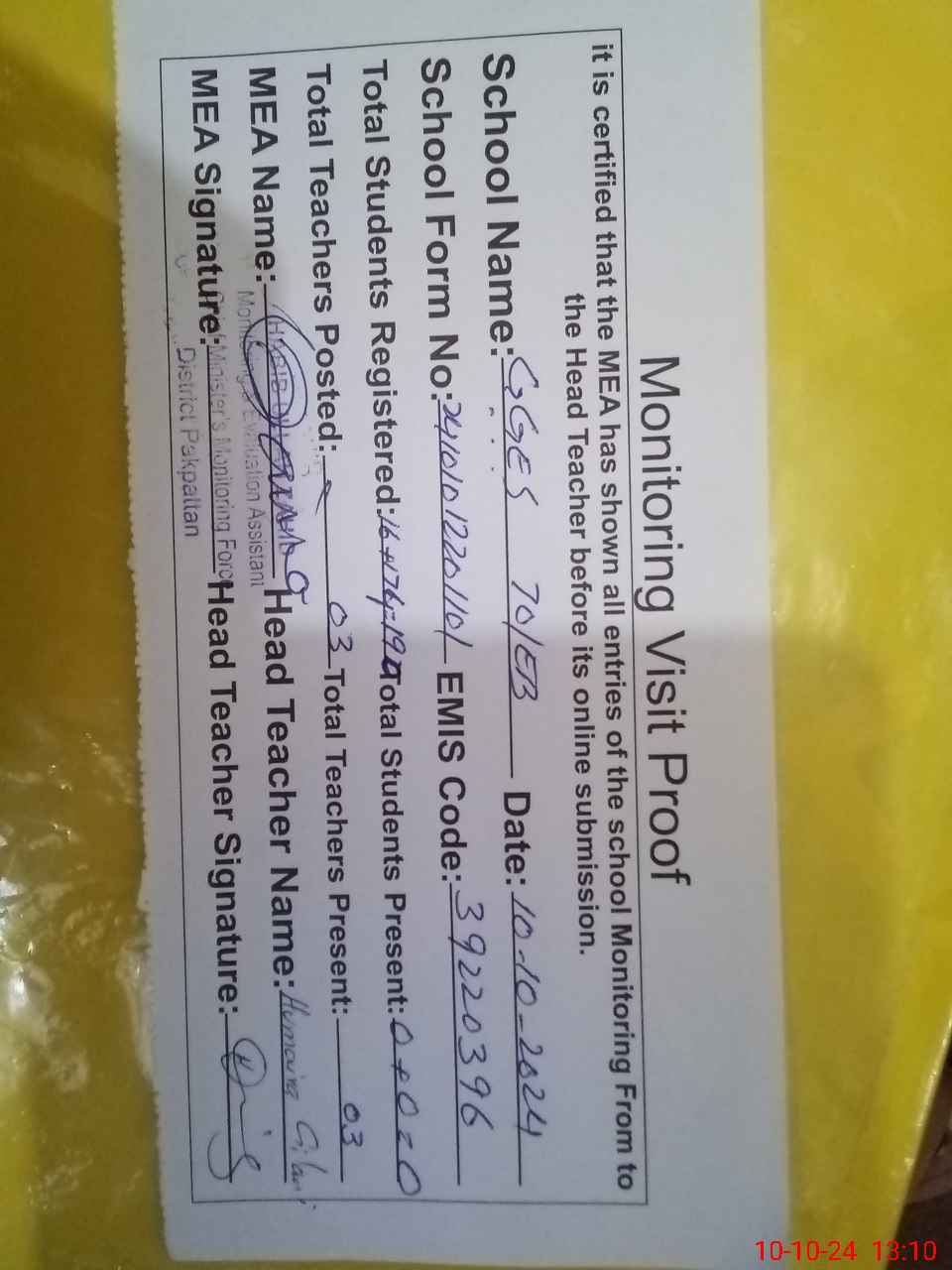| EMIS Code: 39220396 | Name of School: GGES 70/EB | |||