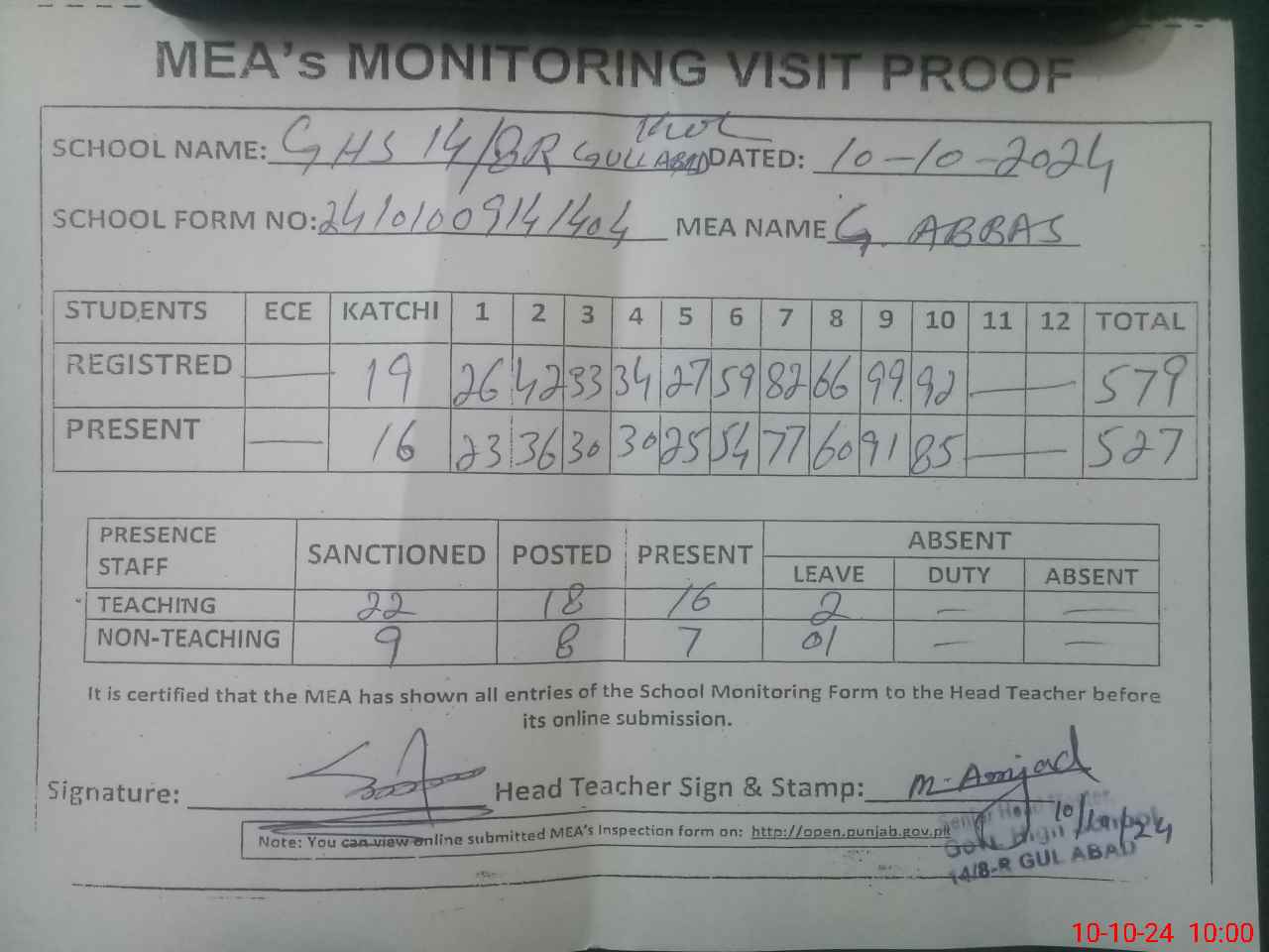 | EMIS Code: 36420027 | Name of School: GHS 14/8-R GUL ABAD, KACHA KHUH | |||