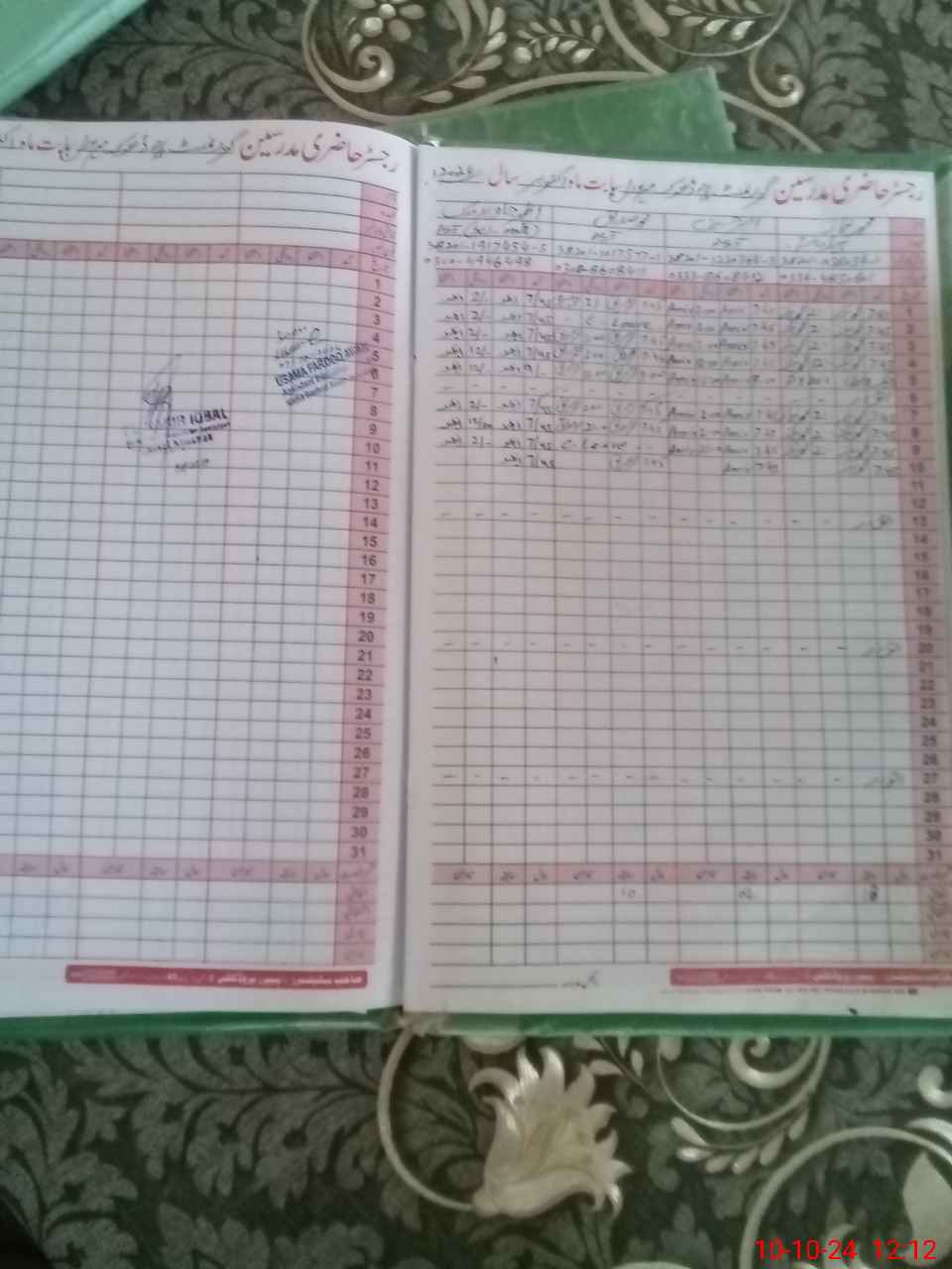 | CNIC | Full Name | Designation | R/C | Absence During Last Calender Month |