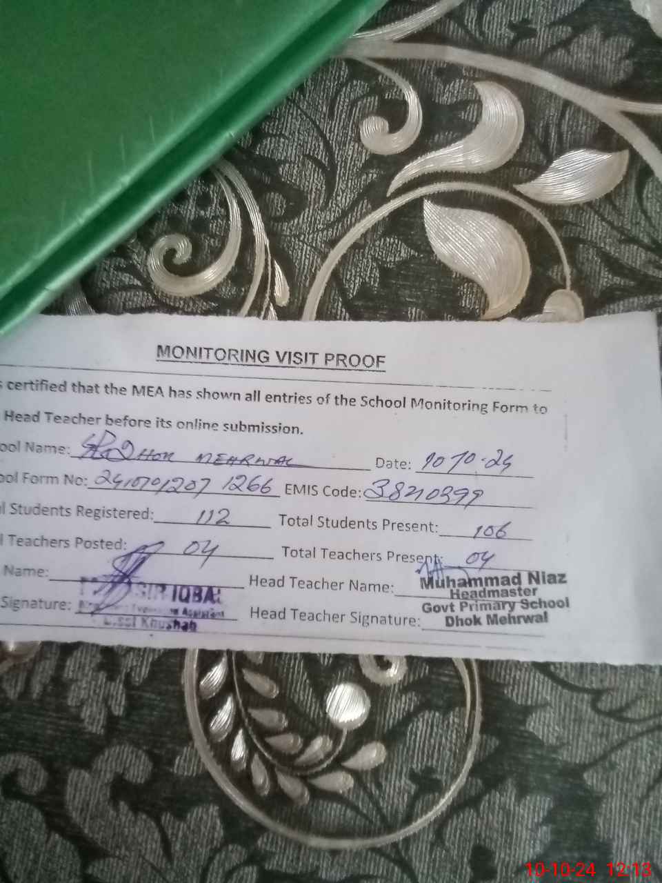 | EMIS Code: 38210399 | Name of School: GPS DHOK MEHRWAL | |||