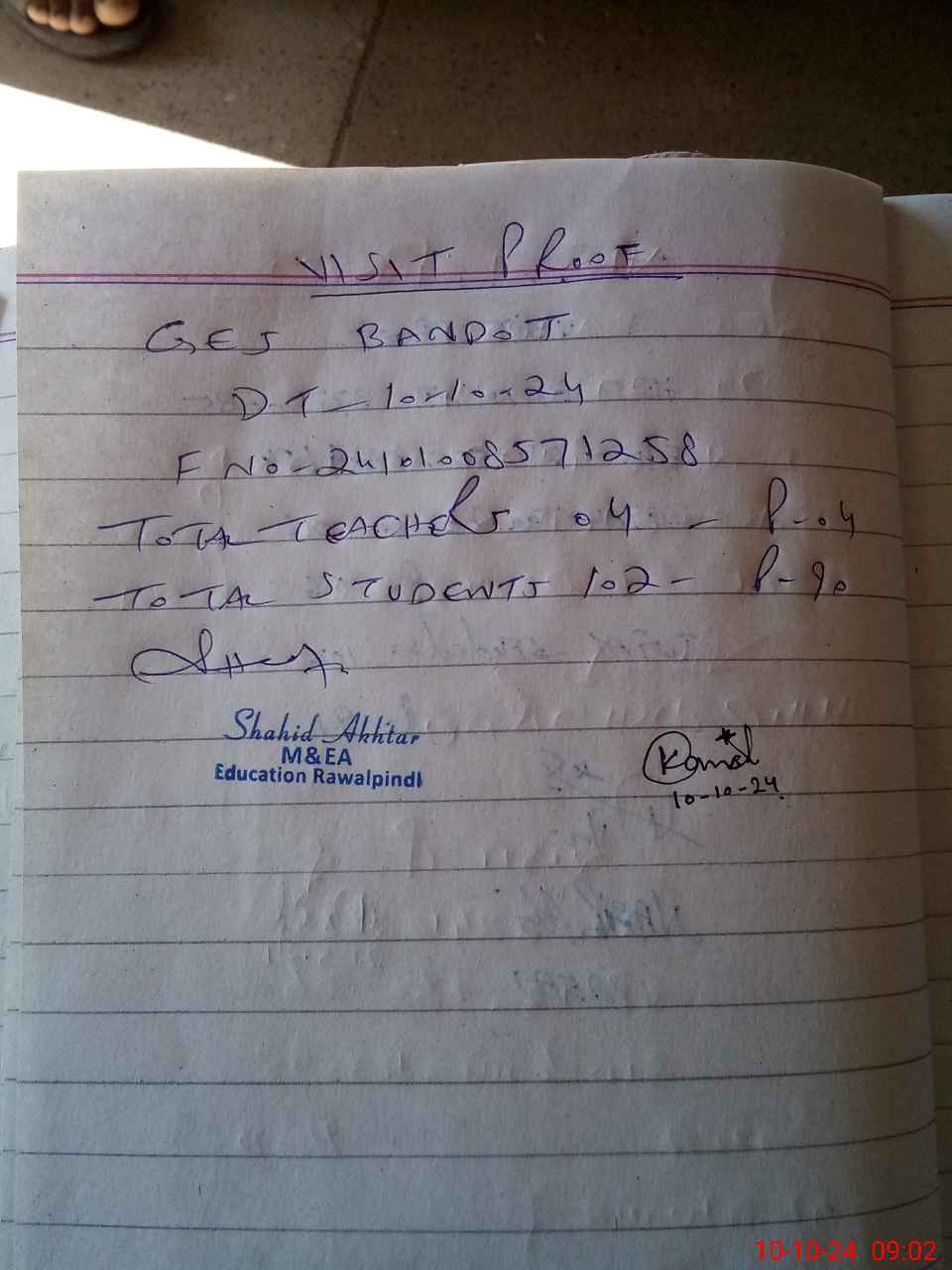 | Attendance Register | Head Teacher | MEA with School | Visit Proof |