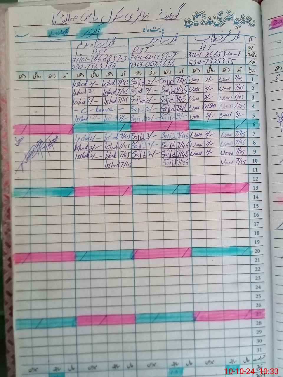 | Name: MUM**** KH**** Designation: (School Headmaster's/Headmistress's) Pst Phone/Cell Number: 03**** |