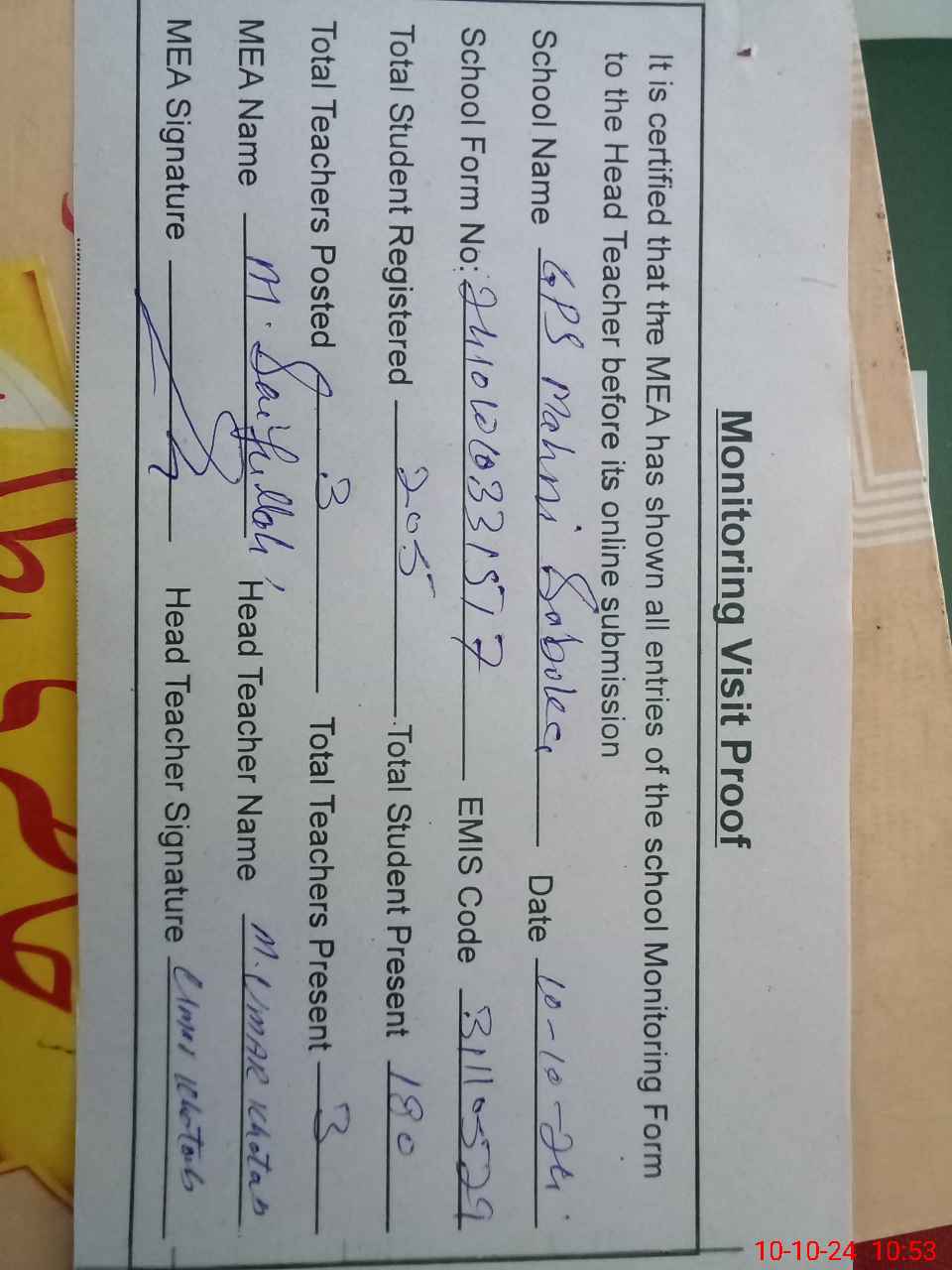 | EMIS Code: 31110529 | Name of School: GPS MAHNI SABOOKA | |||