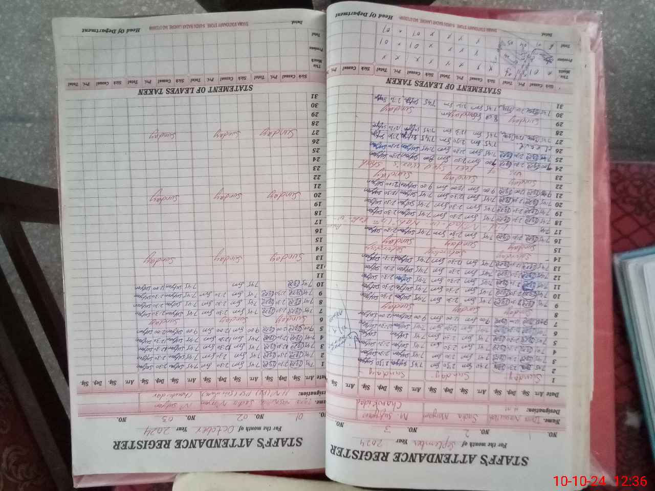 | Leave | Duty | Absent | Maternity | Medical | Ex- Pak |