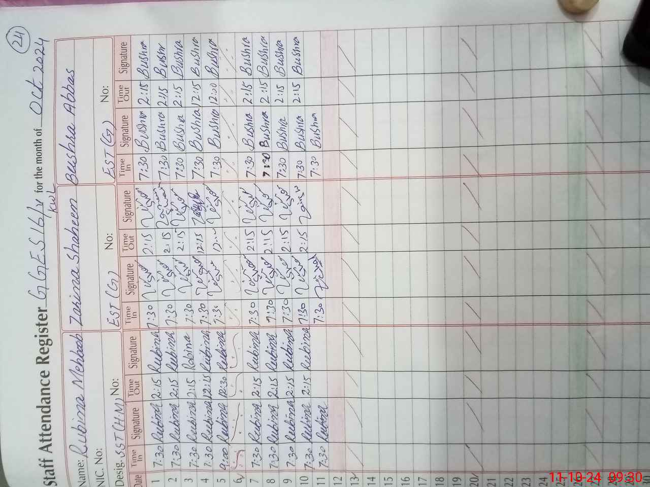 | CNIC | Full Name | Designation | R/C | Absence During Last Calender Month |
