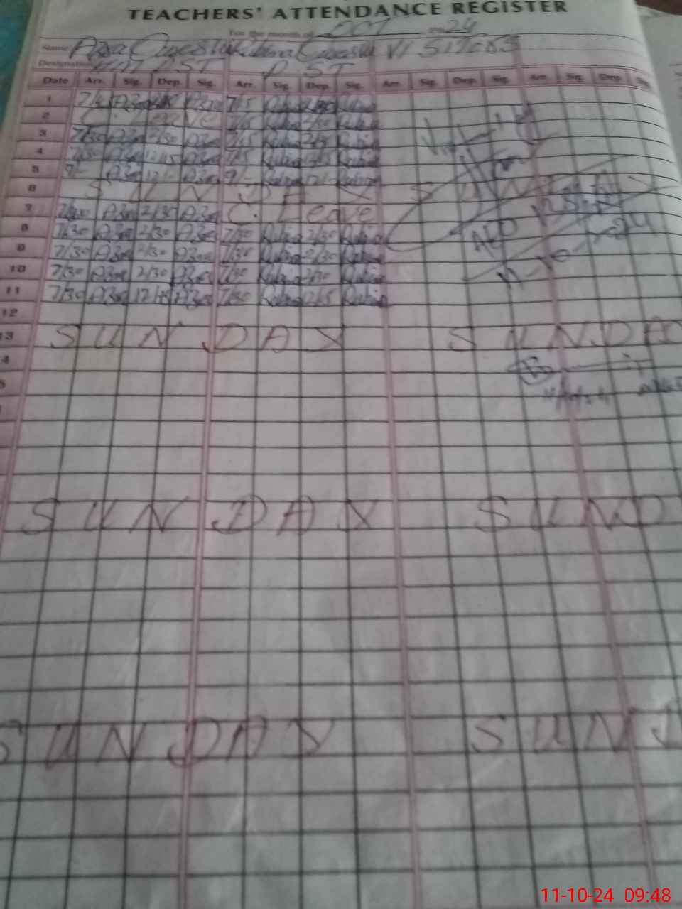 | Monitoring Date: 11-10-2024 | Start Time: 11-10-2024 09:08 AM | End Time: 11-10-2024 09:59 AM | Name of MEA: M.Is**** (S**** 03**** | |
