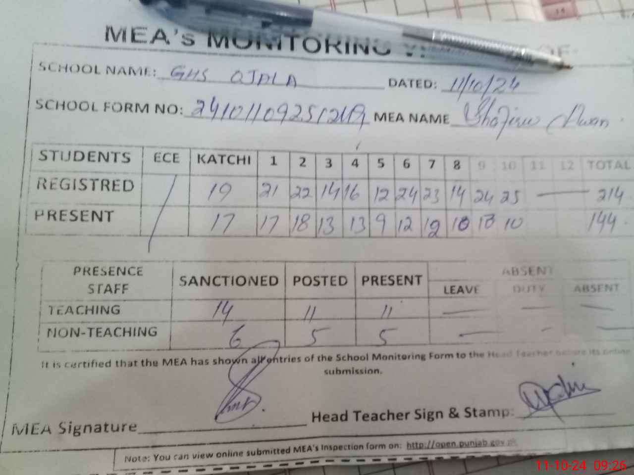 | EMIS Code: 36410088 | Name of School: GHS OJLA P/O SARDAR PUR | |||