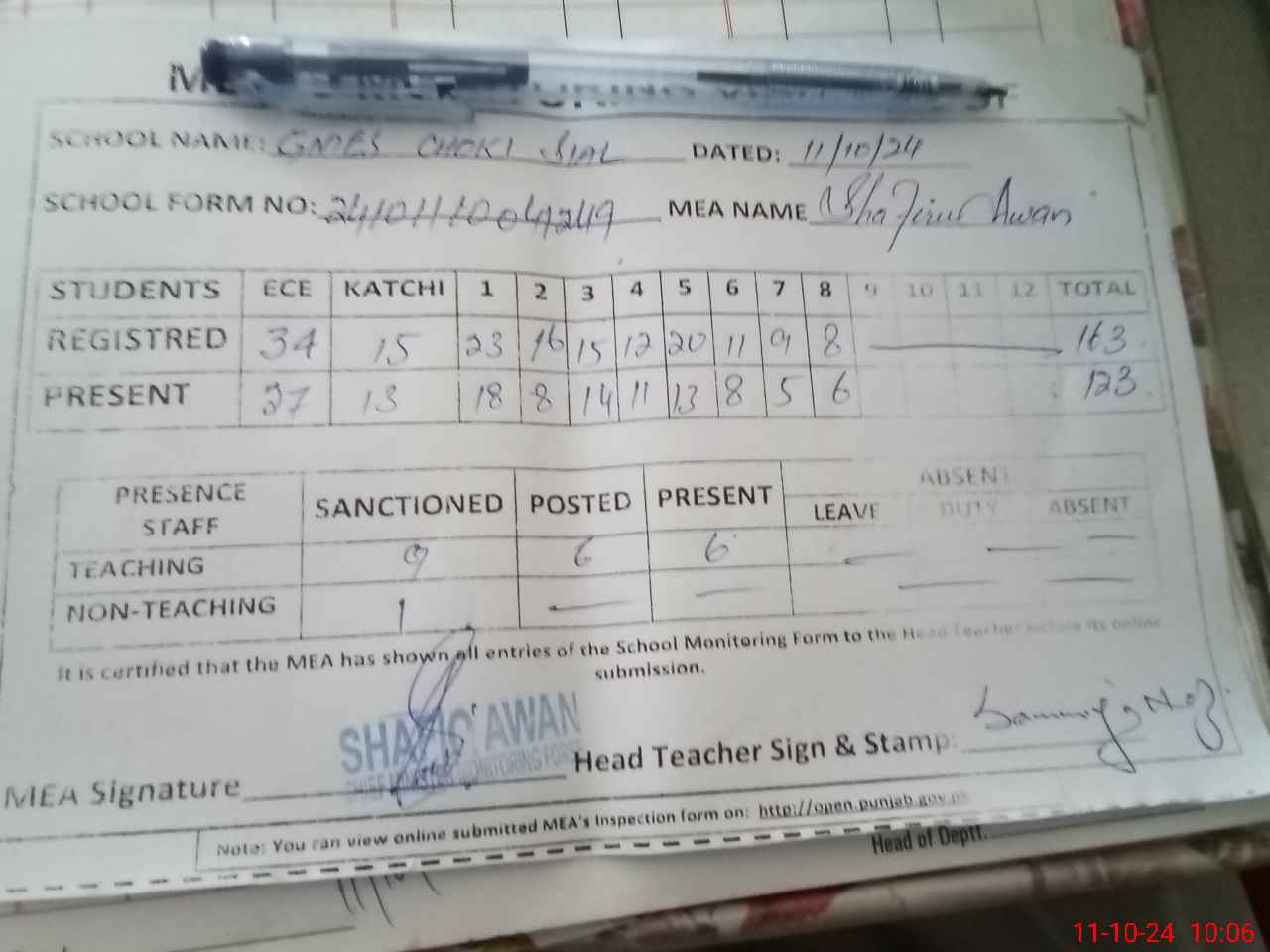 | Certified that this School was Inspected by the Undersigned MEA/DMO Today and the Information Stated Above is as Per Record. | |||||