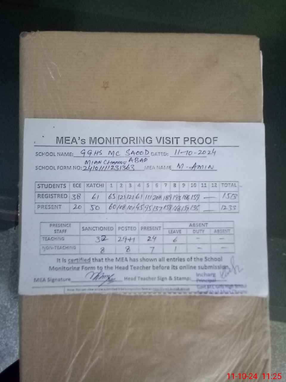 | EMIS Code: 36430274 | Name of School: GGHS MC SAOOD ABAD, MIAN CHANNU | |||