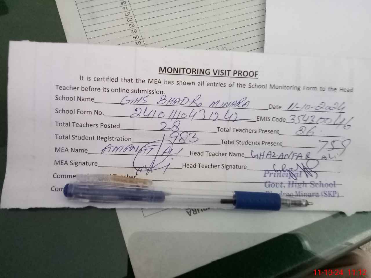 | Certified that this School was Inspected by the Undersigned MEA/DMO Today and the Information Stated Above is as Per Record. | |||||