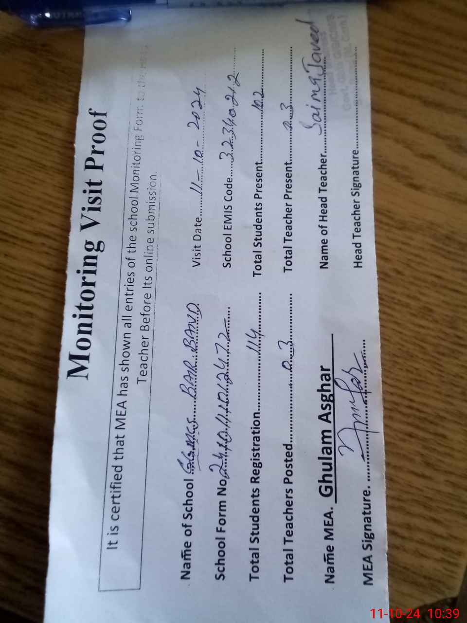 | Certified that this School was Inspected by the Undersigned MEA/DMO Today and the Information Stated Above is as Per Record. | |||||