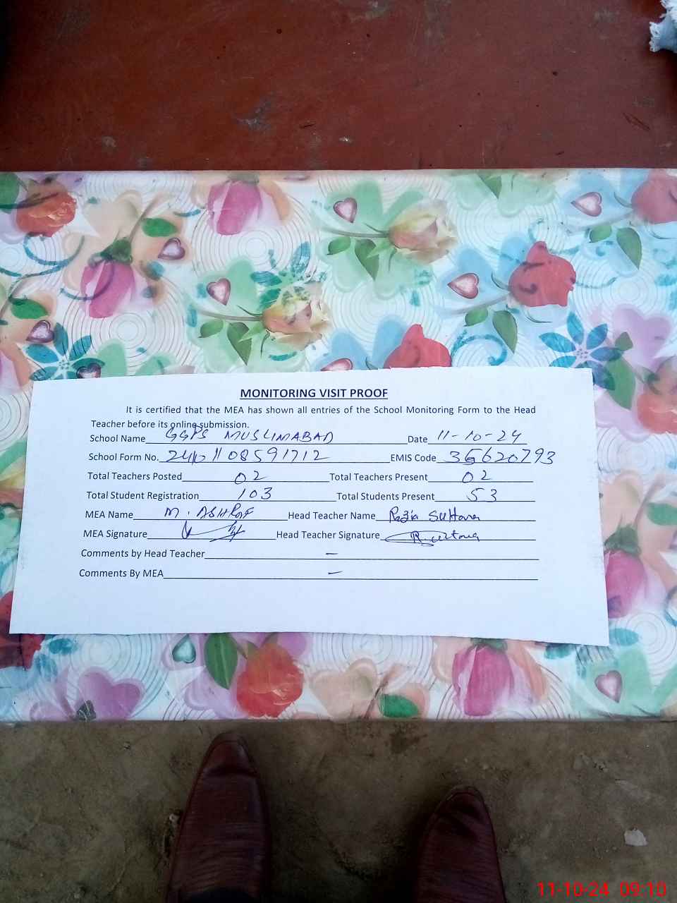 | EMIS Code: 35620793 | Name of School: GGPS MUSLIM ABAD | |||