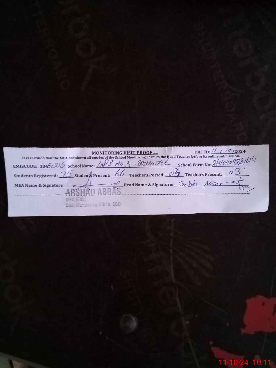 | Certified that this School was Inspected by the Undersigned MEA/DMO Today and the Information Stated Above is as Per Record. | |||||