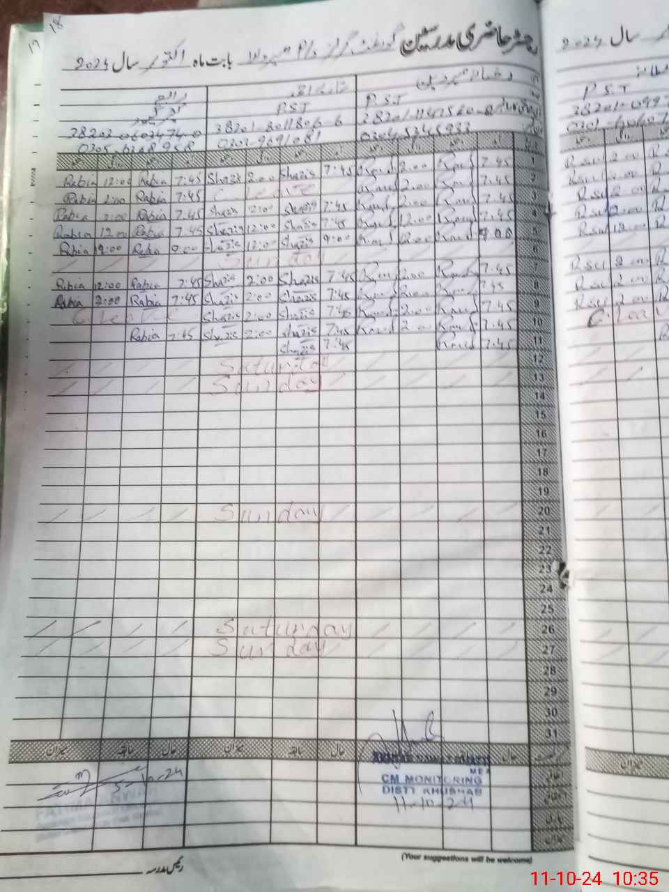 | Monitoring Date: 11-10-2024 | Start Time: 11-10-2024 10:24 AM | End Time: 11-10-2024 10:36 AM | Name of MEA: AK**** NA**** (R**** | |