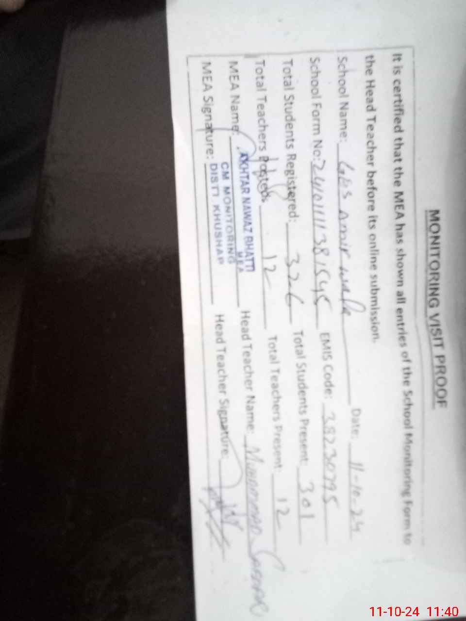 | Certified that this School was Inspected by the Undersigned MEA/DMO Today and the Information Stated Above is as Per Record. | |||||