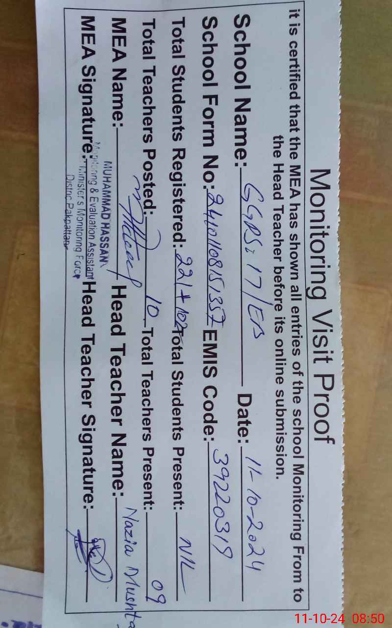| EMIS Code: 39220319 | Name of School: GGES 17 EB | |||